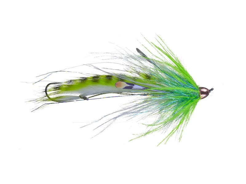 The Dirty Hoh is a cross between an Intruder and a String Leech. It has a rabbit strip to get leech-like movements and a shoulder in the front tied like an Intruder to give the fly a large profile. Mini is 3″ and Chinook size is 4″.