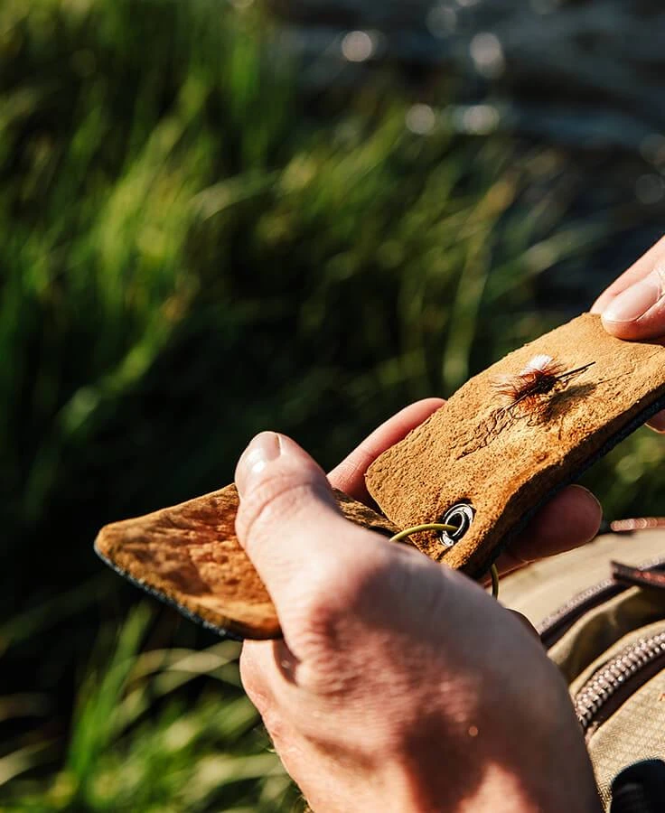 Amadou is primarily composed of a mushroom: “Fomes fomentarius”, and its primary purpose is taking soggy, water-logged, good-for-nothing dry flies and getting them ready to fish again. A simple squeeze between the two pads of this magical material sucks out water from a drowned fly, restoring its ability to float. Though it stands alone as a means of keeping flies floating, it is best viewed as a piece of the dry fly puzzle that includes some kind of dip or gel, and/or a powder floatant.